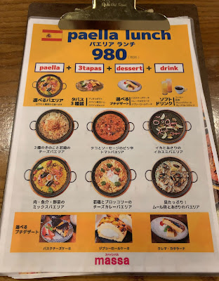 さて、今回この「massa 京橋店」を選んだ理由は、単純にパエリアを食べてみたかったこと、そして何よりランチの看板を見てお得度満載だったからです。