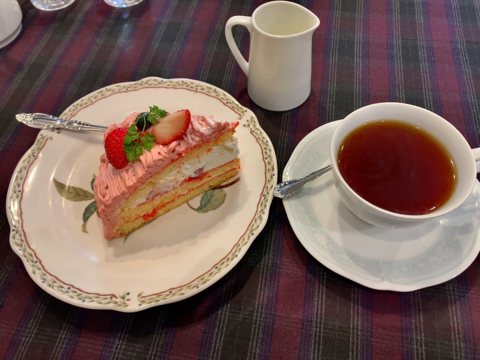 お茶だけの予定だったのですが、せっかくなので私はケーキセットを注文、ドリンクはホットコーヒーにしました。ちなみに、ケーキの名前は忘れてしまったのですが、ストロベリー系だったのは間違いないです。